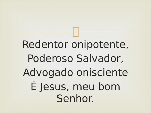 - Redentor onipotente,Poderoso Salvador,Advogado oniscienteÉ Jesus, meu bom Senhor.