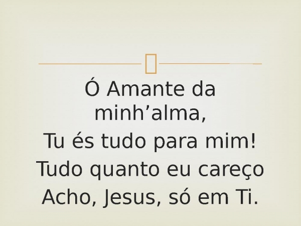 - Ó Amante da minh’alma,Tu és tudo para mim!Tudo quanto eu careçoAcho, Jesus, só em Ti.