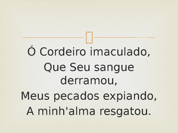- Ó Cordeiro imaculado,Que Seu sangue derramou,Meus pecados expiando,A minh'alma resgatou.