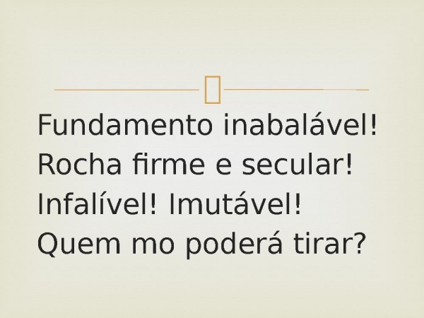 - Fundamento inabalável!Rocha firme e secular!Infalível! Imutável!Quem mo poderá tirar?