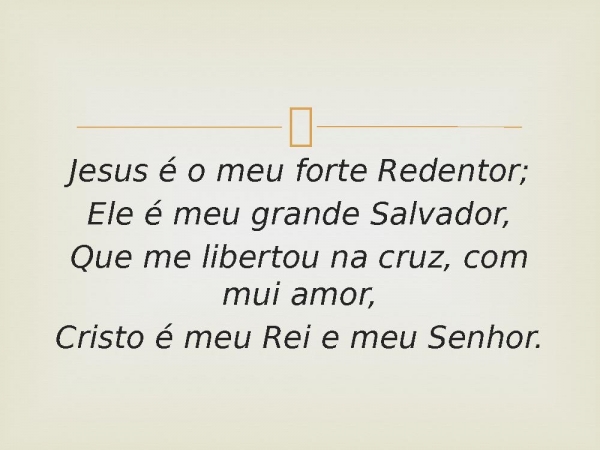 - Jesus é o meu forte Redentor;Ele é meu grande Salvador,Que me libertou na cruz, com mui amor,Cristo é meu Rei e meu Senhor.