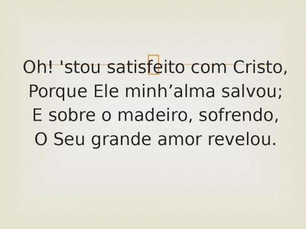 - Oh! 'stou satisfeito com Cristo,Porque Ele minh’alma salvou;E sobre o madeiro, sofrendo,O Seu grande amor revelou.