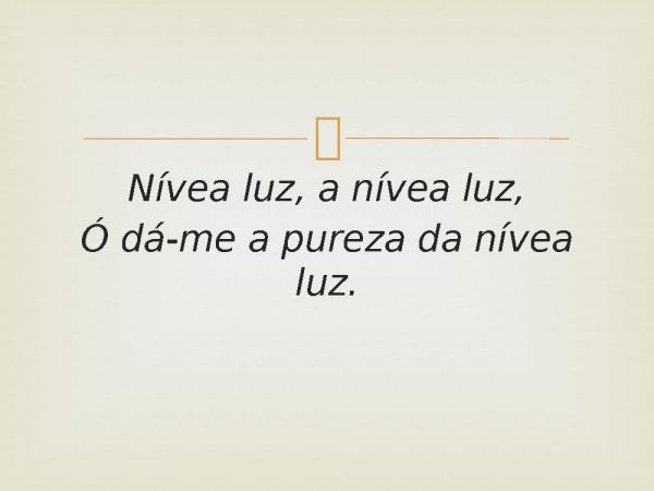 - Nívea luz, a nívea luz,Ó dá-me a pureza da nívea luz.