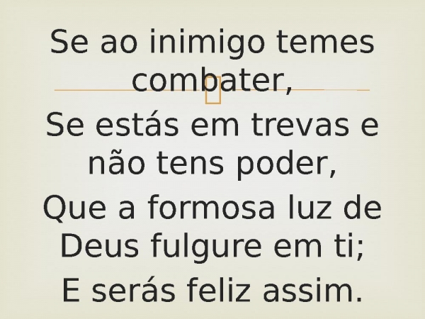 - Se ao inimigo temes combater,Se estás em trevas e não tens poder,Que a formosa luz de Deus fulgure em ti;E serás feliz assim.