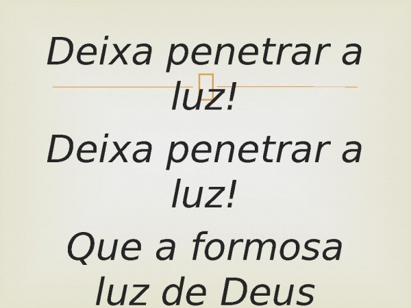 - Deixa penetrar a luz!Deixa penetrar a luz!Que a formosa luz de Deus fulgure em ti;E serás feliz assim.