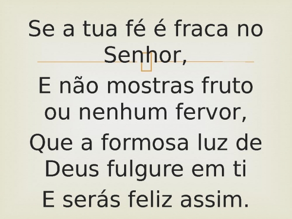 - Se a tua fé é fraca no Senhor,E não mostras fruto ou nenhum fervor,Que a formosa luz de Deus fulgure em tiE serás feliz assim.