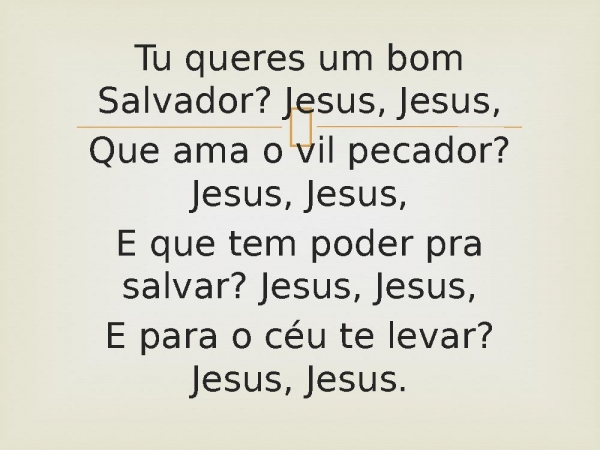 - Tu queres um bom Salvador? Jesus, Jesus,Que ama o vil pecador? Jesus, Jesus,E que tem poder pra salvar? Jesus, Jesus,E para o céu te levar? Jesus, Jesus.