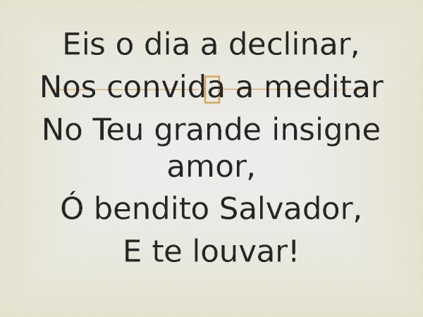 - Eis o dia a declinar,Nos convida a meditarNo Teu grande insigne amor,Ó bendito Salvador,E te louvar!