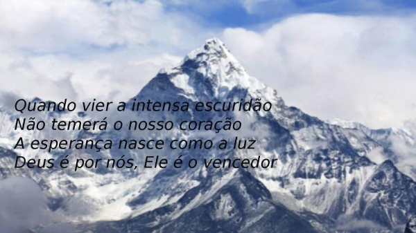- Quando vier a intensa escuridãoNão temerá o nosso coraçãoA esperança nasce como a luzDeus é por nós, Ele é o vencedor