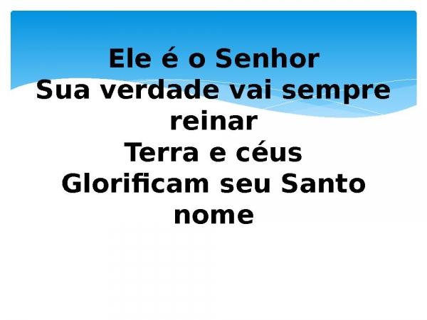 - Ele é o SenhorSua verdade vai sempre reinarTerra e céusGlorificam seu Santo nome