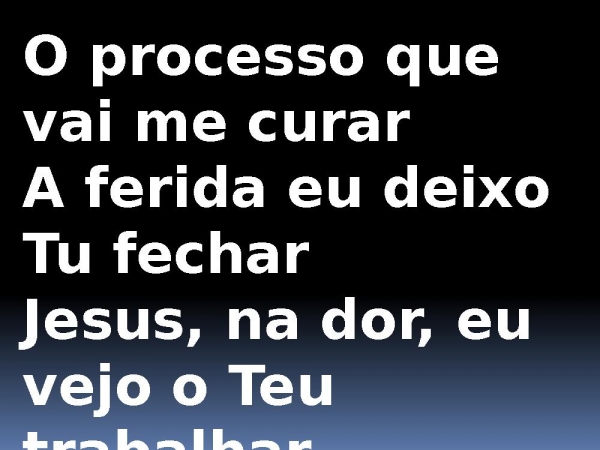 - O processo que vai me curarA ferida eu deixo Tu fecharJesus, na dor, eu vejo o Teu trabalhar