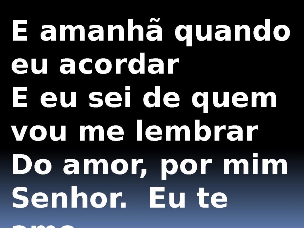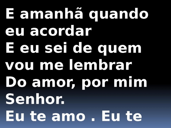 - E amanhã quando eu acordarE eu sei de quem vou me lembrarDo amor, por mim Senhor. Eu te amo