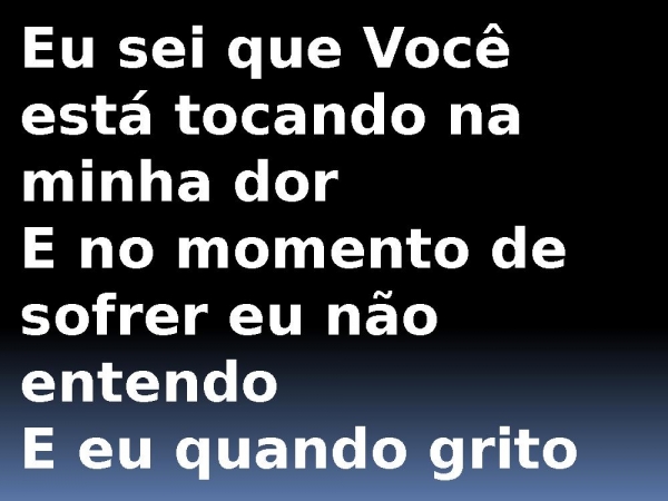 - Eu sei que Você está tocando na minha dorE no momento de sofrer eu não entendoE eu quando grito eu pareço recusarMas eu aceito