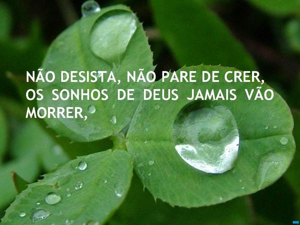 - NÃO DESISTA, NÃO PARE DE CRER,OS SONHOS DE DEUS JAMAIS VÃO MORRER,