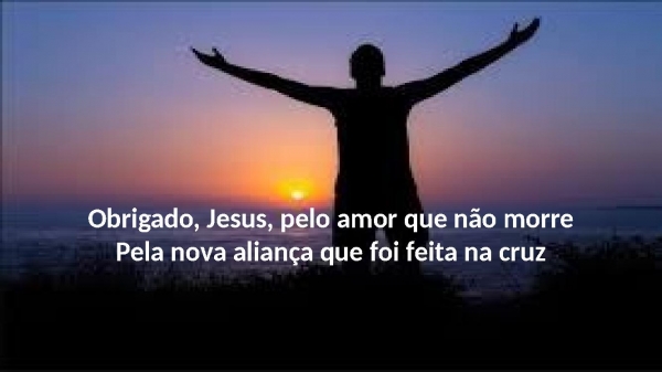 - Obrigado, Jesus, pelo amor que não morrePela nova aliança que foi feita na cruz