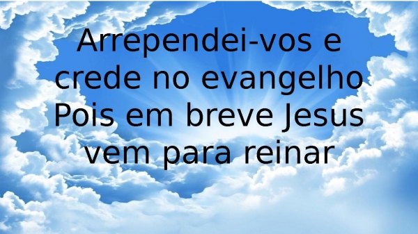 - Arrependei-vos e crede no evangelhoPois em breve Jesus vem para reinar