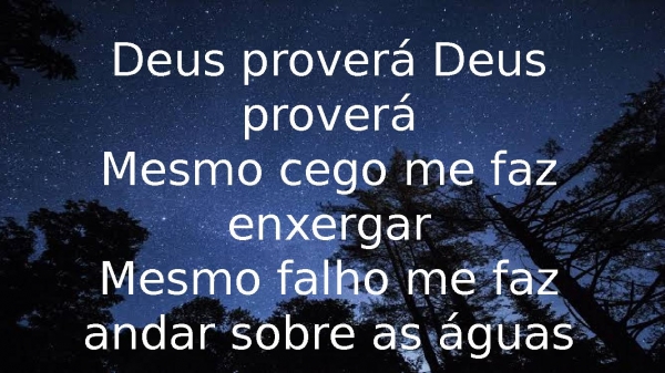 - Deus proverá Deus proveráMesmo cego me faz enxergarMesmo falho me faz andar sobre as águas