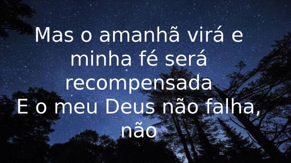 - Mas o amanhã virá e minha fé será recompensadaE o meu Deus não falha, não