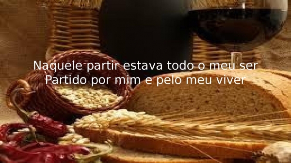 - Na mesa, o pão, o vinho tambémNo peito, uma dor, com aquilo que vem
