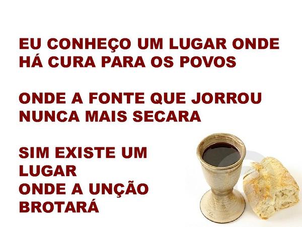 - EU CONHEÇO UM LUGAR ONDE HÁ CURA PARA OS POVOS ONDE A FONTE QUE JORROU NUNCA MAIS SECARA SIM EXISTE UM LUGAR ONDE A UNÇÃO BROTARÁ