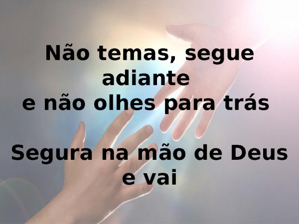 - Não temas, segue adiante e não olhes para trás Segura na mão de Deus e vai