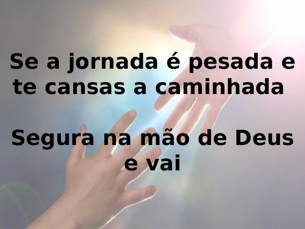 - Se a jornada é pesada e te cansas a caminhada Segura na mão de Deus e vai
