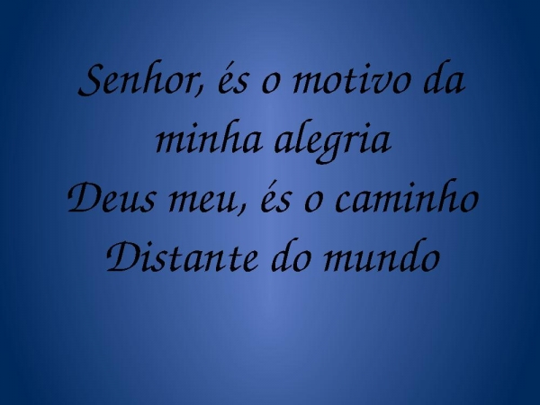 - Senhor, és o motivo da minha alegriaDeus meu, és o caminhoDistante do mundo