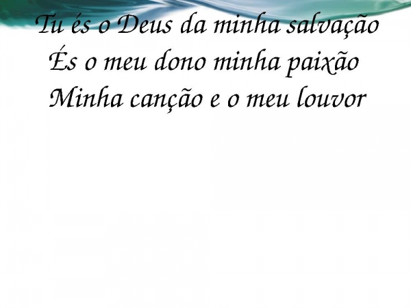 - Tu és o Deus da minha salvaçãoÉs o meu dono minha paixão Minha canção e o meu louvor