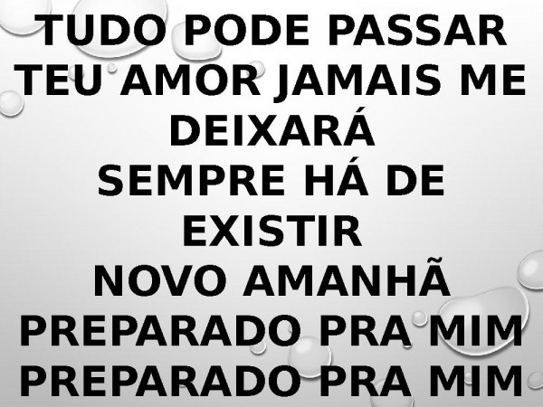 - Tudo pode passarTeu amor jamais me deixaráSempre há de existirNovo amanhã preparado pra mimPreparado pra mim