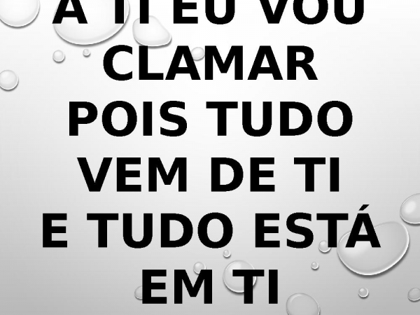 - A ti eu vou clamarPois tudo vem de tiE tudo está em ti