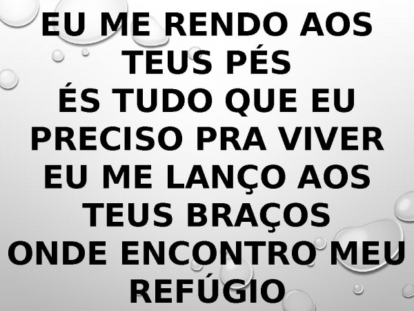- Eu me rendo aos teus pésÉs tudo que eu preciso pra viverEu me lanço aos teus braçosOnde encontro meu refúgio