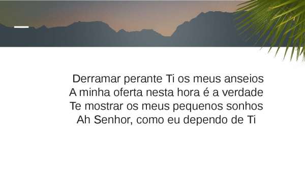- Derramar perante Ti os meus anseiosA minha oferta nesta hora é a verdadeTe mostrar os meus pequenos sonhosAh Senhor, como eu dependo de Ti
