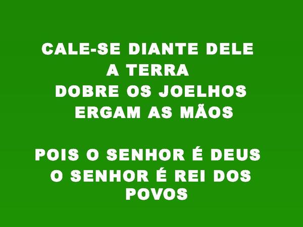 - CALE-SE DIANTE DELE A TERRA DOBRE OS JOELHOS ERGAM AS MÃOSPOIS O SENHOR É DEUS O SENHOR É REI DOS POVOS
