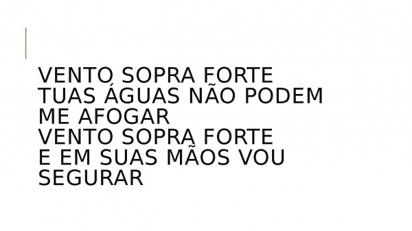 - Vento sopra forteTuas águas não podem me afogarVento sopra forteE em suas mãos vou segurar