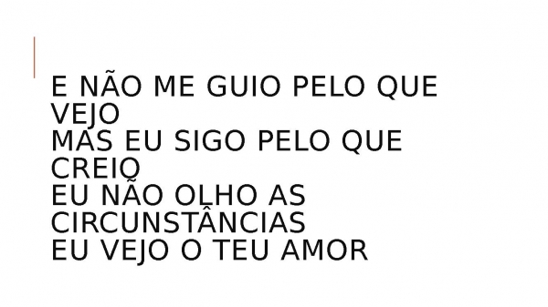 - E não me guio pelo que vejoMas eu sigo pelo que creioEu não olho as circunstânciasEu vejo o teu amor
