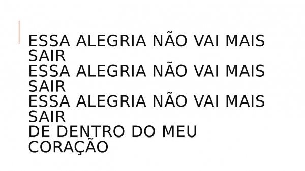 - Essa alegria não vai mais sairEssa alegria não vai mais sairEssa alegria não vai mais sairDe dentro do meu coração
