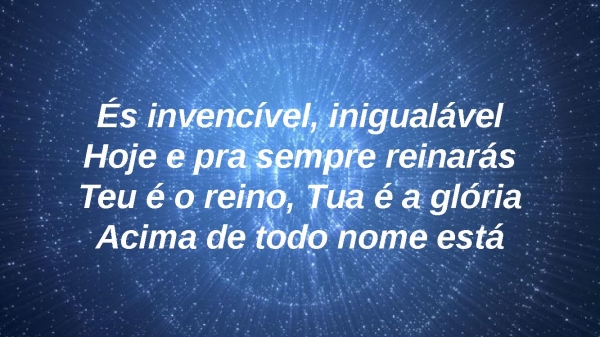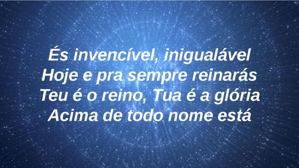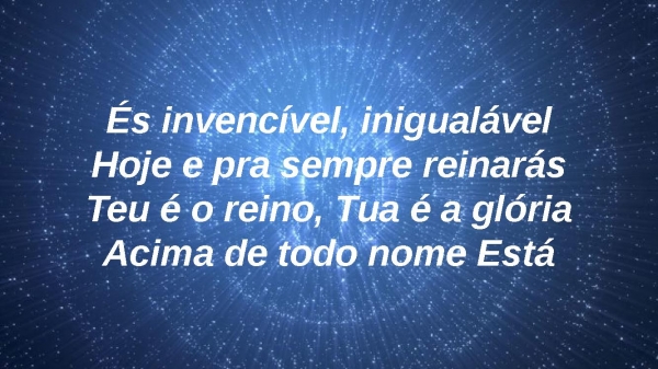 - És invencível, inigualávelHoje e pra sempre reinarásTeu é o reino, Tua é a glóriaAcima de todo nome está