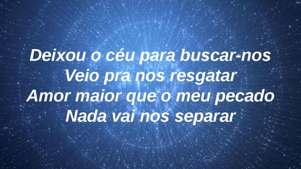 - Deixou o céu para buscar-nosVeio pra nos resgatarAmor maior que o meu pecadoNada vai nos separar