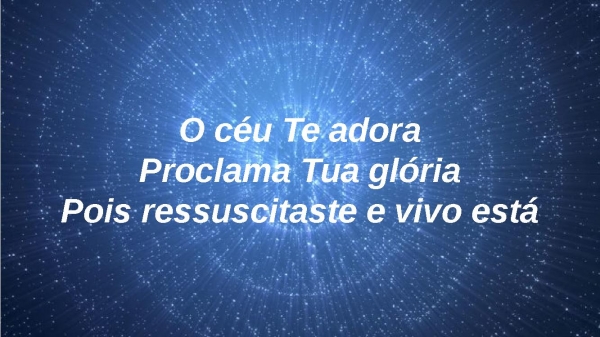 - O céu Te adoraProclama Tua glóriaPois ressuscitaste e vivo está