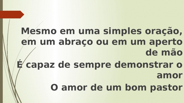 - Mesmo em uma simples oração, em um abraço ou em um aperto de mãoÉ capaz de sempre demonstrar o amorO amor de um bom pastor
