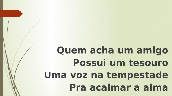 - Quem acha um amigo Possui um tesouro Uma voz na tempestadePra acalmar a alma