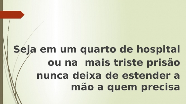- Seja em um quarto de hospital ou na mais triste prisãonunca deixa de estender a mão a quem precisa