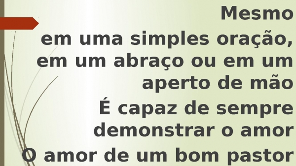 - Mesmo em uma simples oração, em um abraço ou em um aperto de mão É capaz de sempre demonstrar o amor O amor de um bom pastor