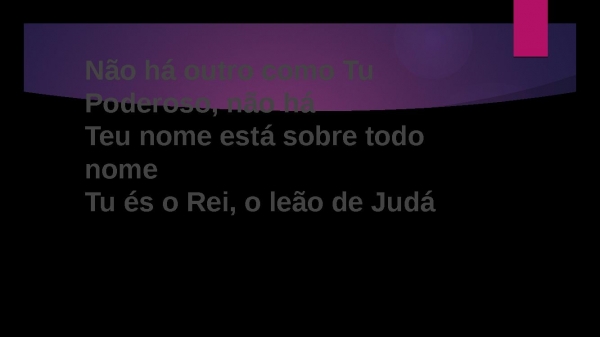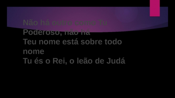- Não há outro como TuPoderoso, não háTeu nome está sobre todo nomeTu és o Rei, o leão de Judá