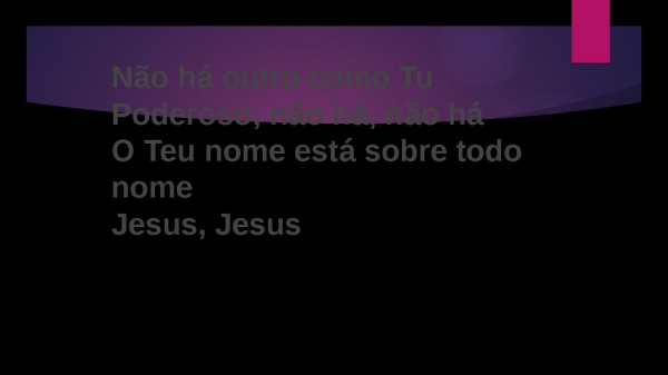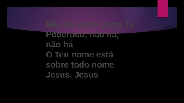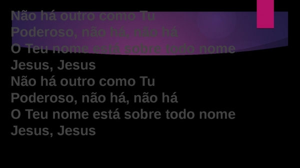 - Não há outro como TuPoderoso, não há, não háO Teu nome está sobre todo nomeJesus, JesusNão há outro como TuPoderoso, não há, não háO Teu nome está sobre todo nomeJesus, Jesus