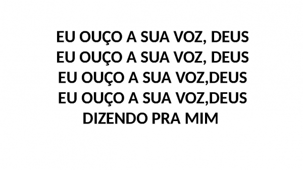 - EU OUÇO A SUA VOZ, DEUSEU OUÇO A SUA VOZ, DEUSEU OUÇO A SUA VOZ,DEUSEU OUÇO A SUA VOZ,DEUSDIZENDO PRA MIM