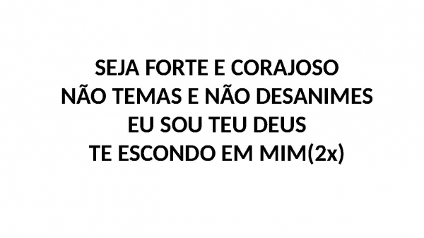 - SEJA FORTE E CORAJOSONÃO TEMAS E NÃO DESANIMESEU SOU TEU DEUSTE ESCONDO EM MIM(2x)