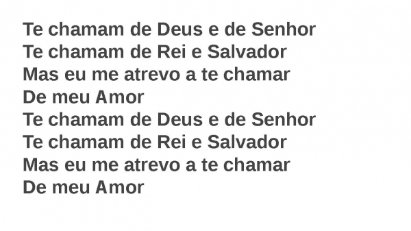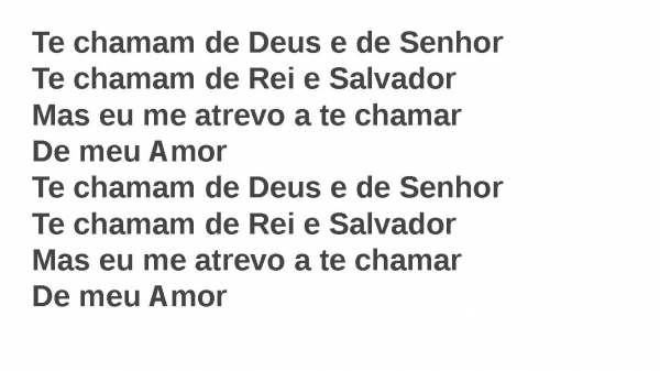 - Te chamam de Deus e de SenhorTe chamam de Rei e SalvadorMas eu me atrevo a te chamarDe meu AmorTe chamam de Deus e de SenhorTe chamam de Rei e SalvadorMas eu me atrevo a te chamarDe meu Amor