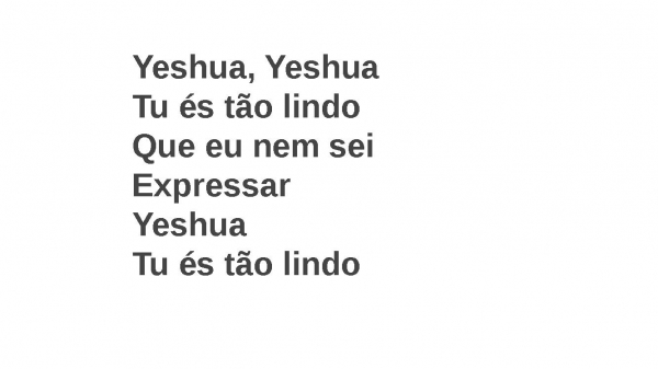 - Yeshua, YeshuaTu és tão lindoQue eu nem seiExpressarYeshuaTu és tão lindo