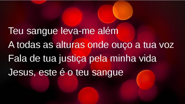 - Teu sangue leva-me alémA todas as alturas onde ouço a tua vozFala de tua justiça pela minha vidaJesus, este é o teu sangue